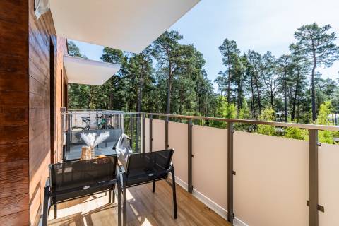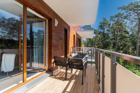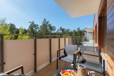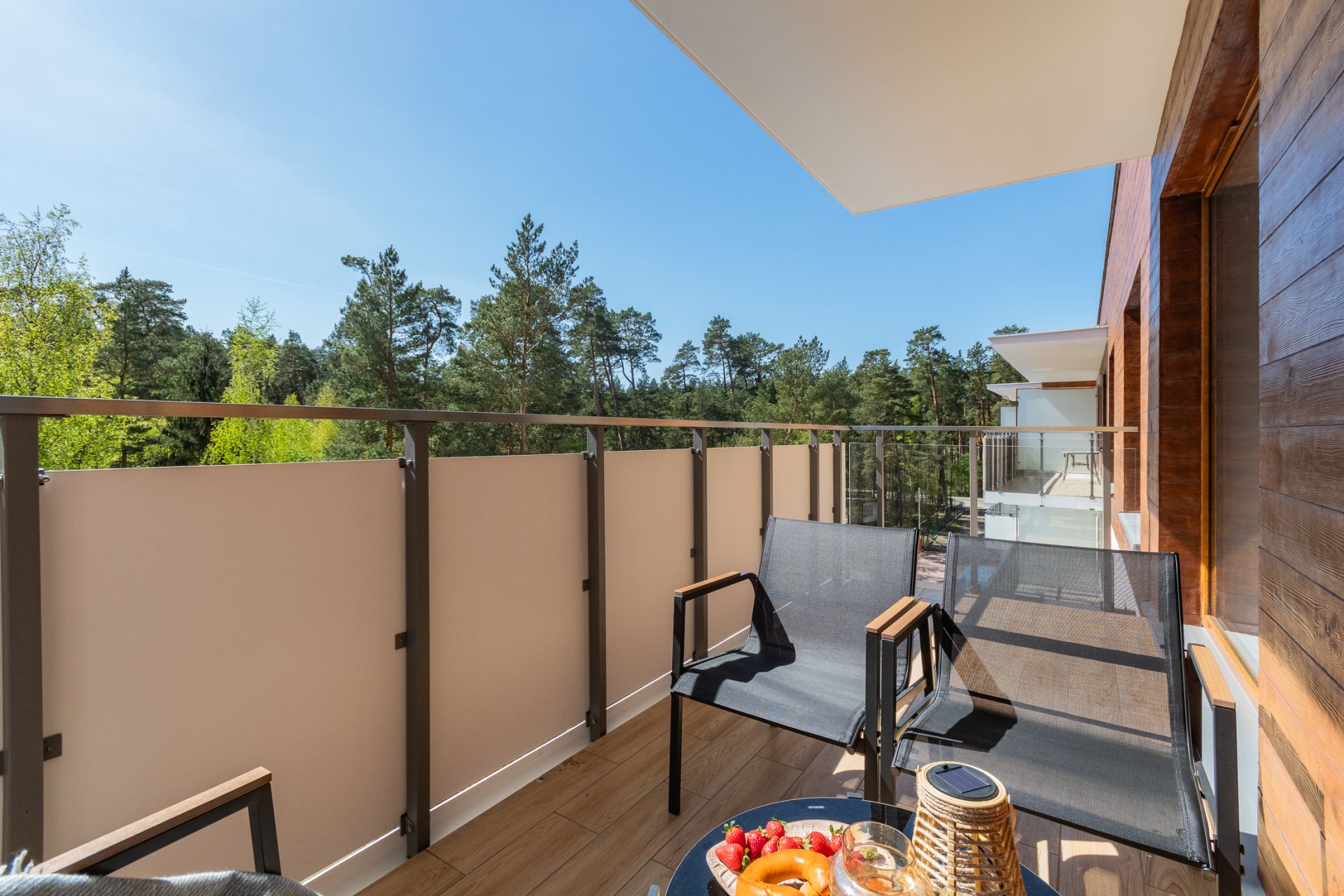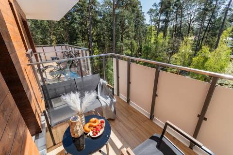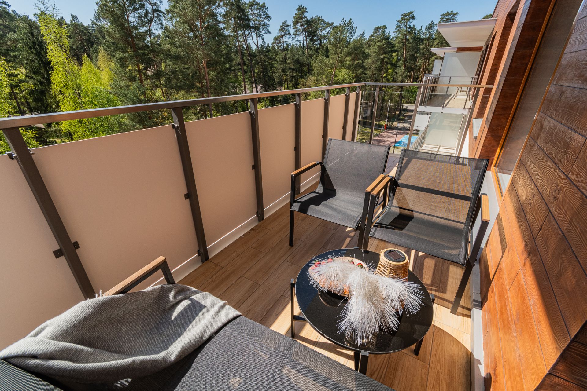 ☕ Balkon z zestawem wypoczynkowym – idealny na poranną kawę lub wieczorne rozmowy