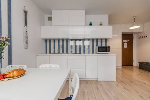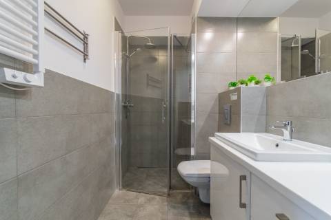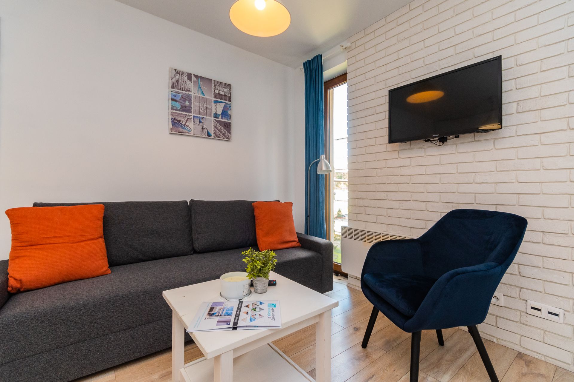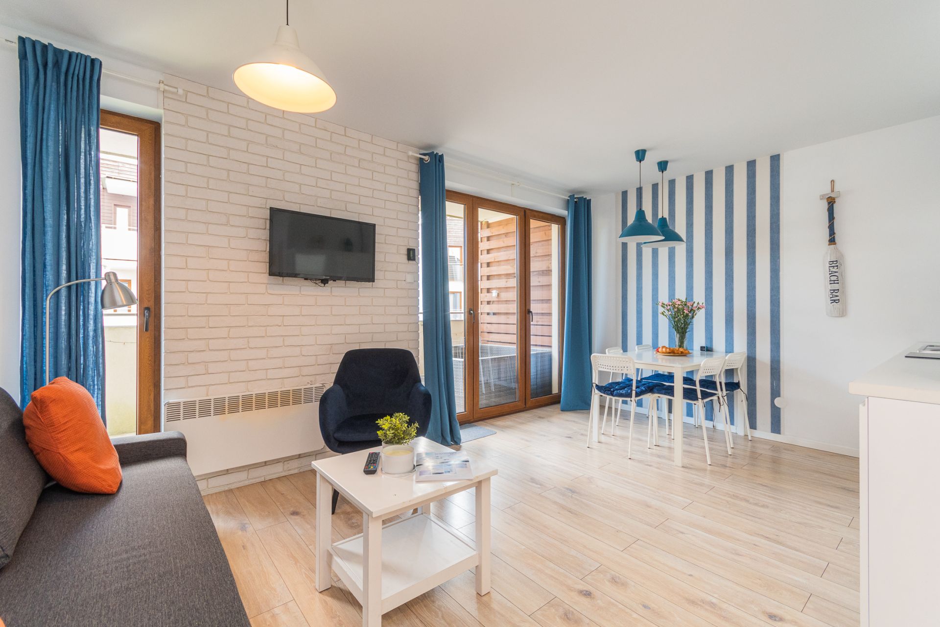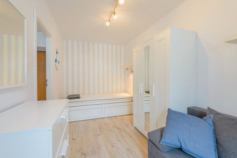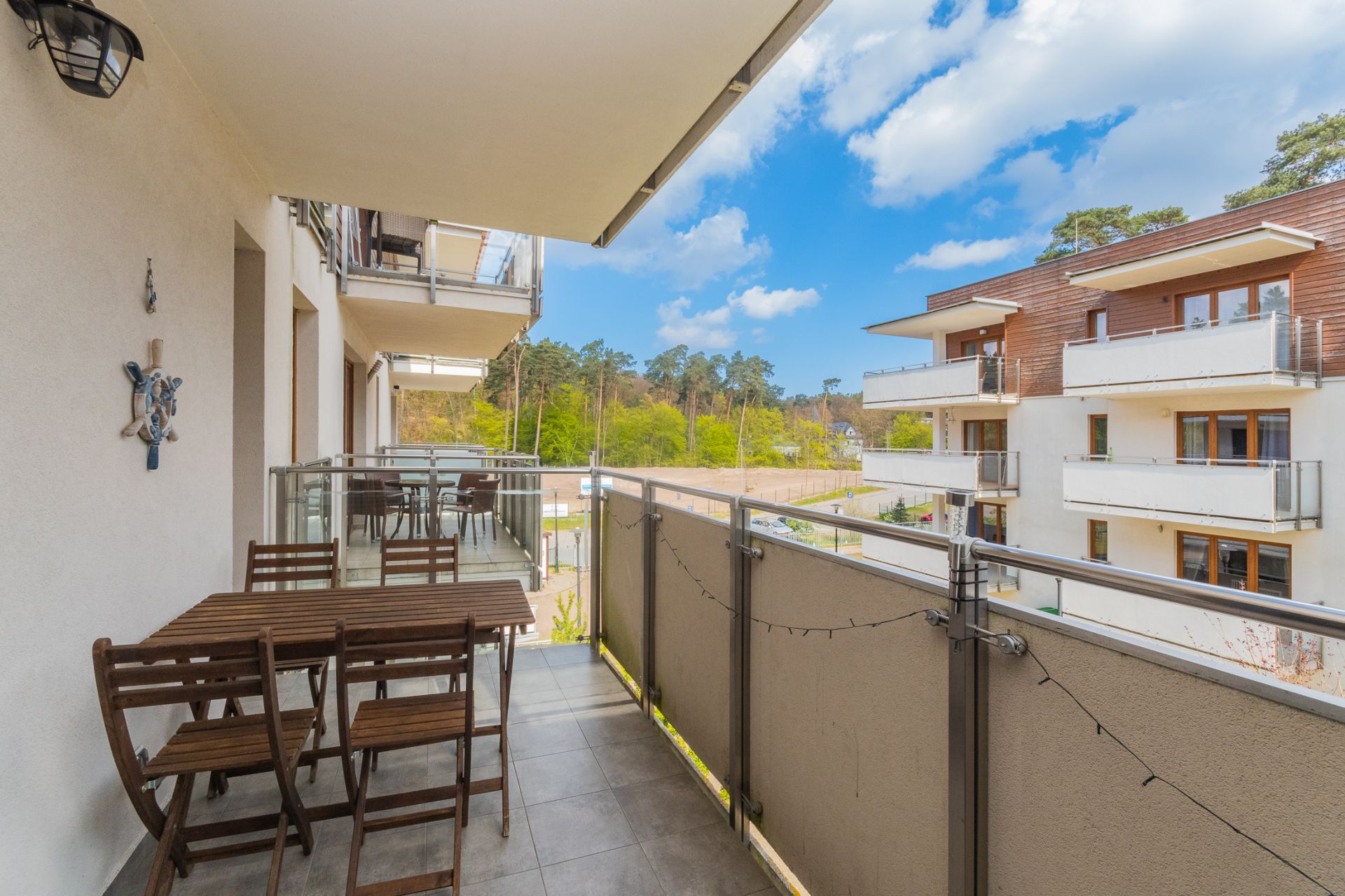 Bardzo przytulny apartament o metrażu 36m2 mieści się na II piętrze od strony wschodniej. Składa się z odseparowanej sypialni, salonu wypoczynkowego, łazienki oraz balkonu. Idealny dla pięciu osób. W zamykanej sypialni znajduje się dwuosobowy, rozkładany narożnik oraz łóżko jednoosobowe. Salon za sprawą rozkładanego narożnika jest miejscem do spania dla dwóch osób. Z prywatnego balkonu można zobaczyć kawałek lasu. Jeżeli oczekujesz komfortowego wypoczynku, tutaj będziesz czuć się doskonale.