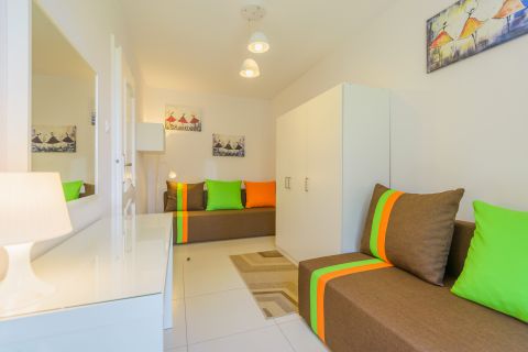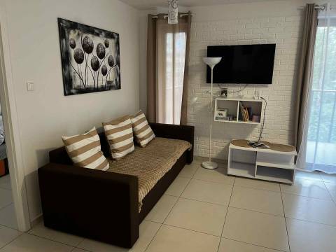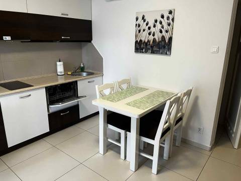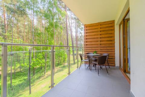 Kolorowy apartament o powierzchni 36m2 położony jest na I piętrze od strony wschodniej. Samodzielne mieszkanie składa się z salonu i aneksu kuchennego, oddzielnej sypialni, łazienki z kabiną prysznicową oraz balkonu. Z balkonu roztacza się przepiękny widok na las, co sprzyja relaksowi i przynosi kojący nastrój. Apartament będzie doskonałym wyborem na spędzenie urlopu dla maksymalnie sześciu osób. Miejsca noclegowe to: rozkładana kanapa dwuosobowa w salonie oraz dwie rozkładane kanapy w sypialni. Doskonały wybór dla Osób lubiących odpoczywać w otoczeniu przyrody.