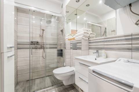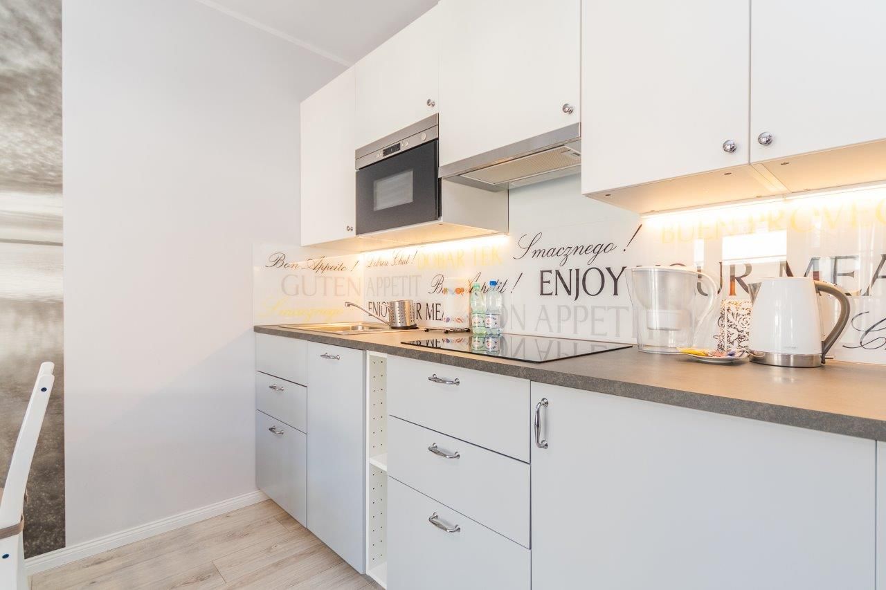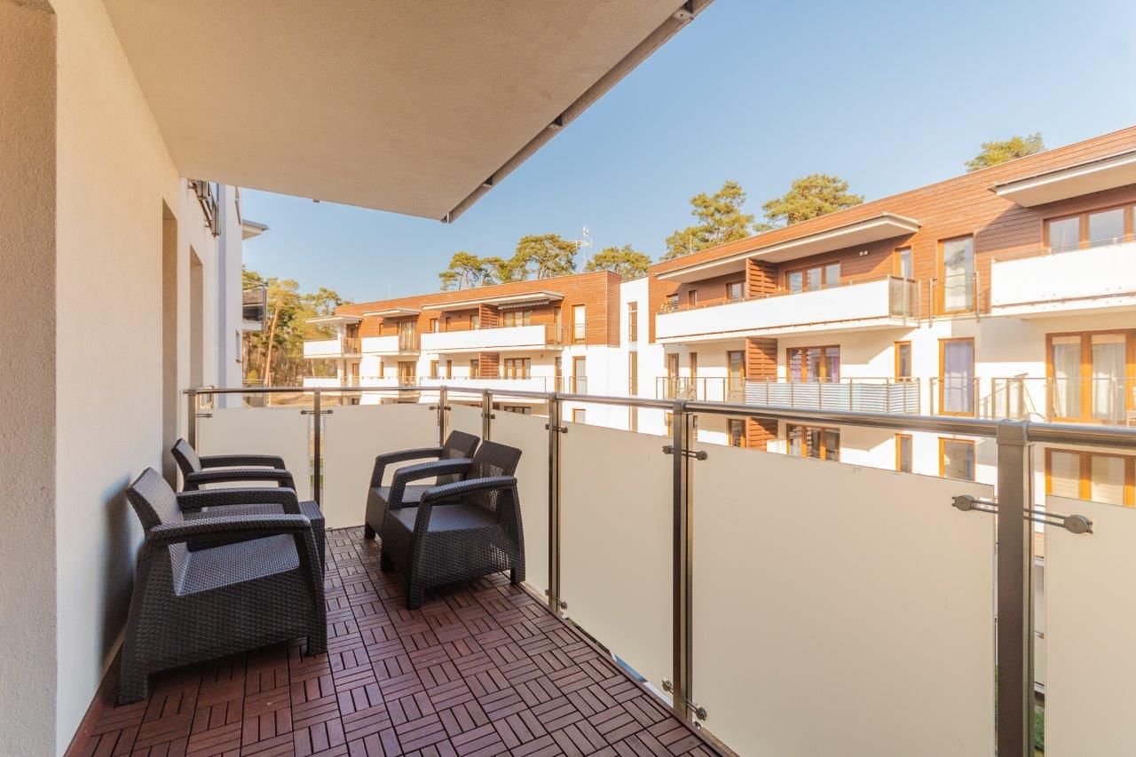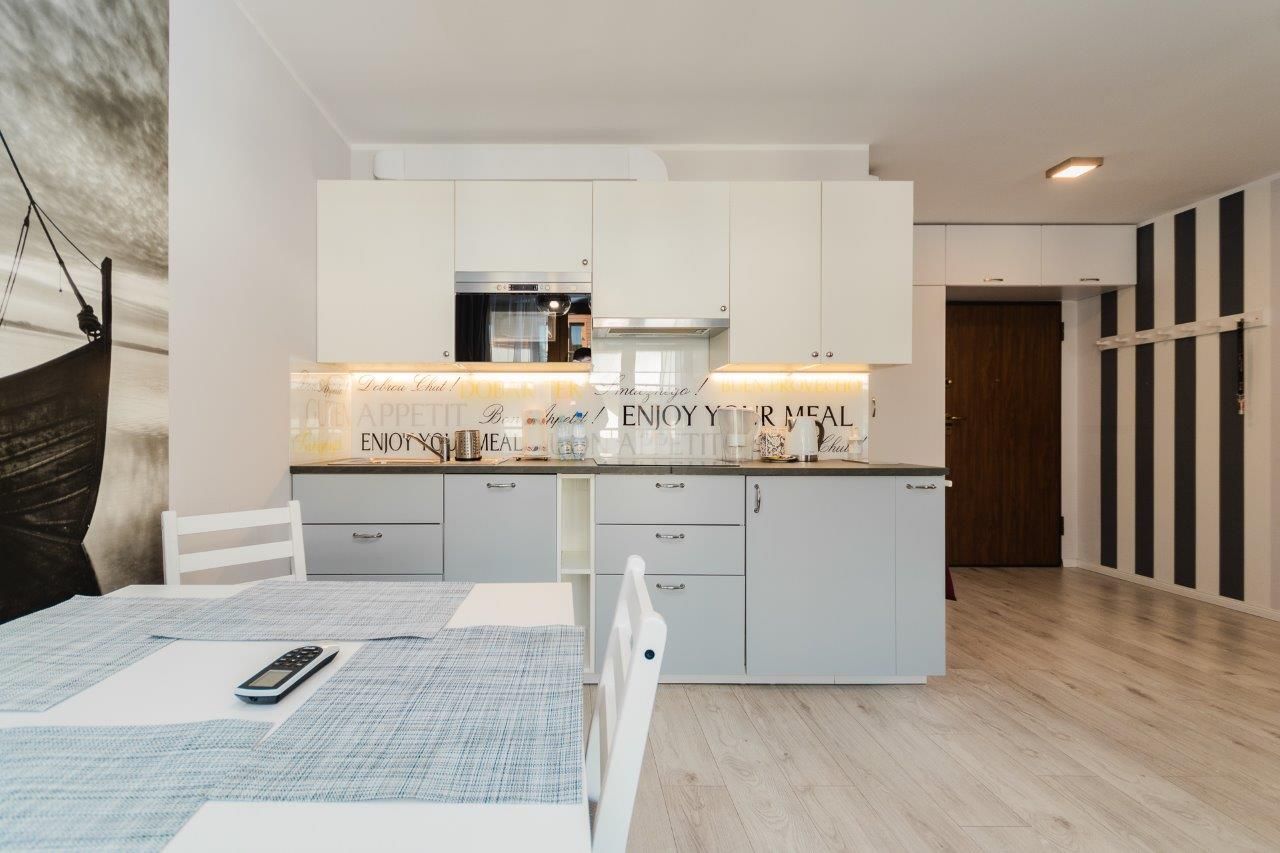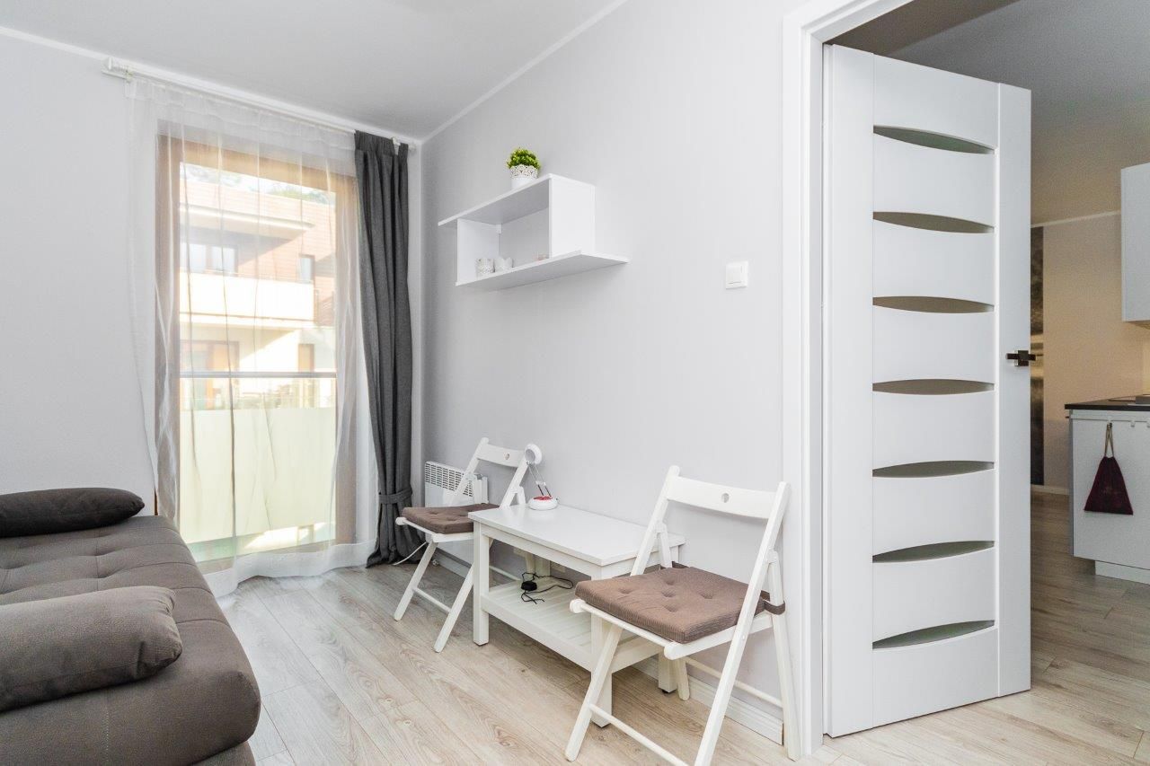Komfortowy apartament o powierzchni 36m2 położony na II piętrze od strony wschodniej. Składa się z salonu z pełni wyposażonym aneksem kuchennym, sypialni, łazienki oraz przestronnego balkonu. Do dyspozycji Gości jest sześć miejsc noclegowych: łóżko małżeńskie w sypialni a także sofa rozkładana dla 1 osoby oraz rozkładana dwuosobowa kanapa w salonie. Mieszkanie jest nowoczesne i zadbane, a oryginalne dodatki nadają mu charakteru. Zdecydowanie miejsce dla Gości lubiących elegancję i niebanalny styl, równocześnie oczekujących komfortowego wypoczynku.