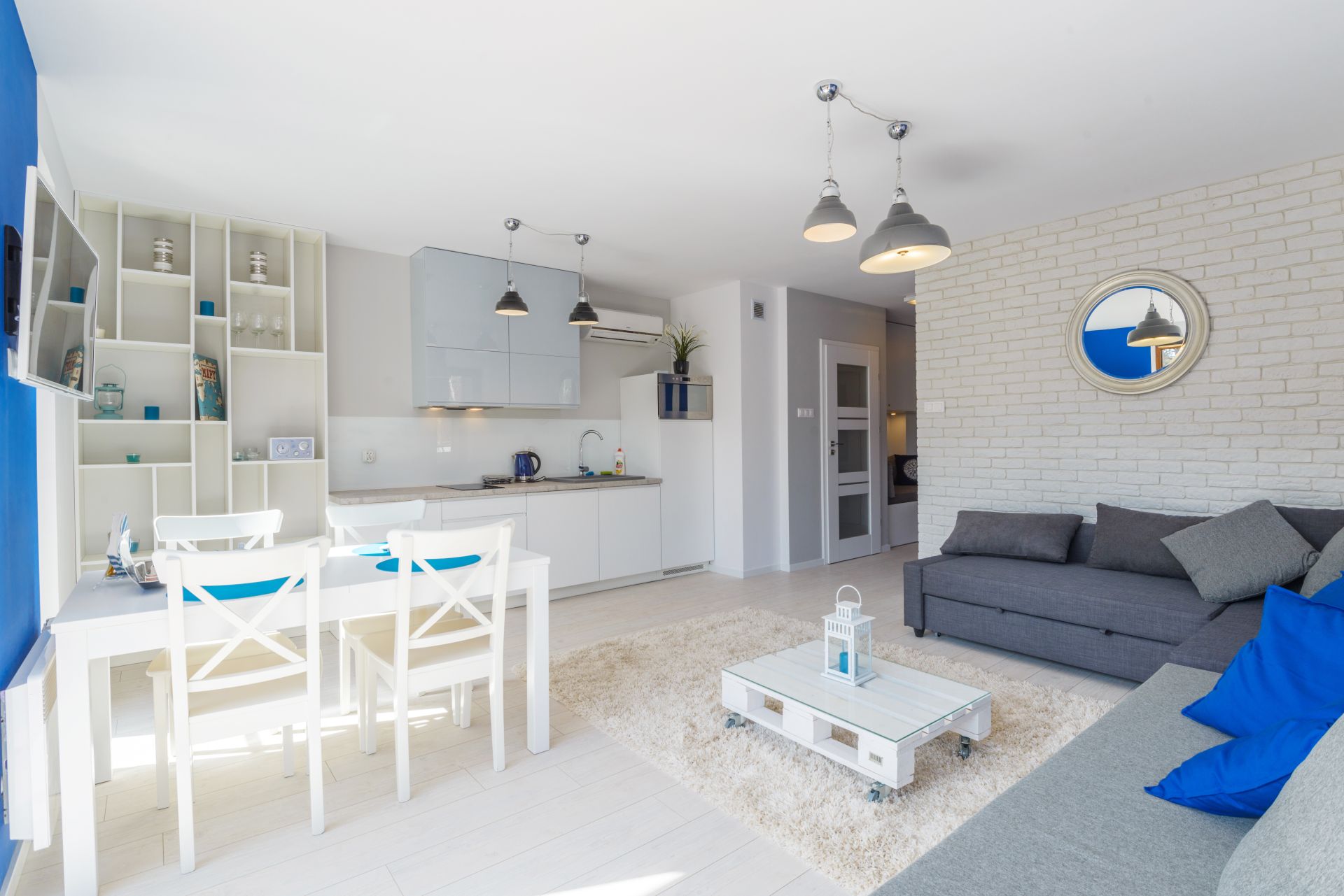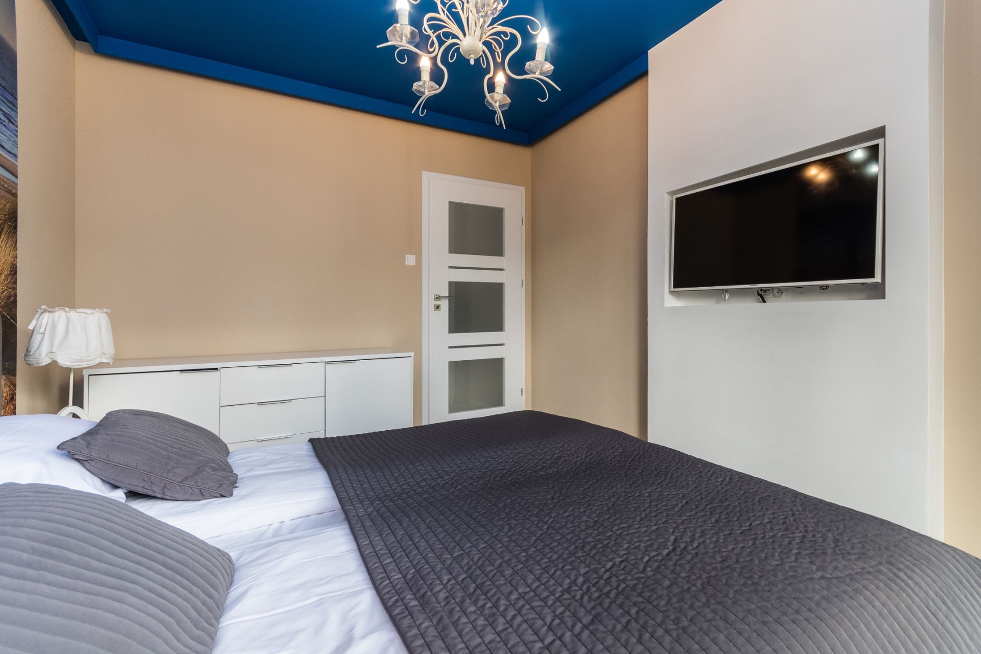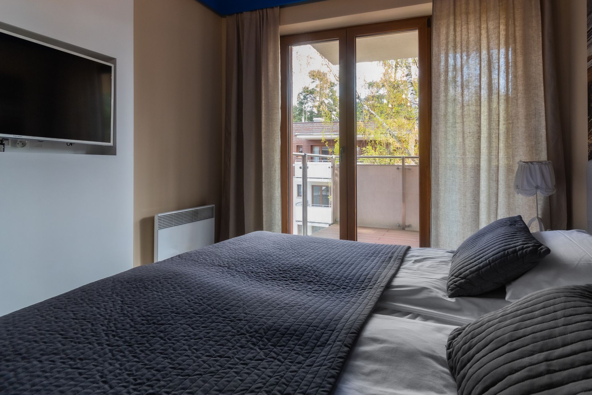 Przestronny apartament o powierzchni 50m2 położony jest na III piętrze, ekspozycja wschodnio-południowa. Składa się z salonu z aneksem kuchennym, niezależnej sypialni, łazienki. Dodatkowo do mieszkania przynależy słoneczny, przestronny balkon o powierzchni 23m2. Do dyspozycji Gości jest siedem miejsc noclegowych: łoże małżeńskie w sypialni oraz rozkładany dwuosobowy narożnik, rozkładana kanapa dwuosobowa w salonie, dodatkowe miejsce noclegowe w przejściu pomiędzy salonem a sypialnią. Przestronne i przytulne wnętrze utrzymane w klimacie nadmorskim spełnia wymogi wszystkich naszych klientów, nawet tych najbardziej wymagających.