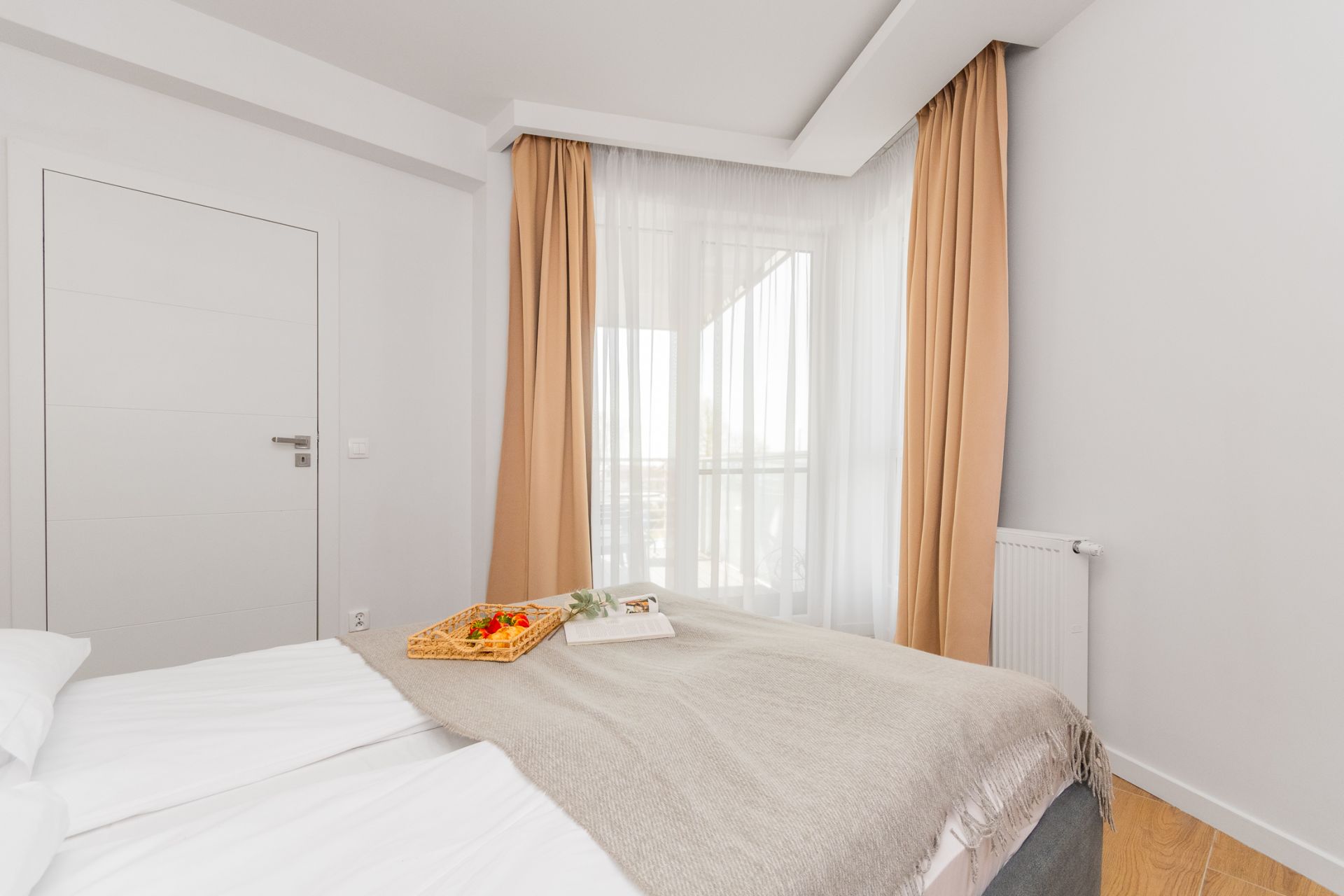 Wygodny apartament z oddzielną sypialnią, salonem, łazienką w której możemy znaleźć pralkę, aneksem kuchennym oraz balkonem, zajmuje powierzchnię 31m2. Dostępne są cztery miejsca noclegowe: w salonie rozkładana dwuosobowa kanapa oraz w sypialni łoże małżeńskie. W mieszkaniu panuje domowy nastrój. Apartament znajduje się na I piętrze. Do apartamentu przynależy 1 miejsce postojowe. W budynku znajduje się cichobieżna winda.