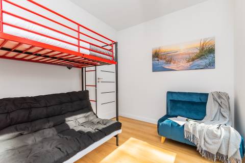 Prezentowany apartament położony jest na II piętrze, od strony południowej, co gwarantuje doskonałe nasłonecznienie i przyjemny klimat przez cały dzień. To propozycja stworzona z myślą o wygodnym pobycie dla maksymalnie 5 osób – idealna zarówno na krótki wypoczynek, jak i dłuższy pobyt.