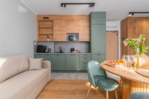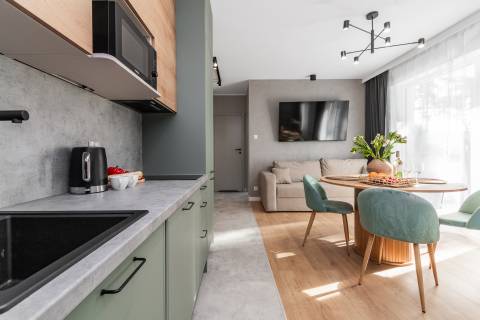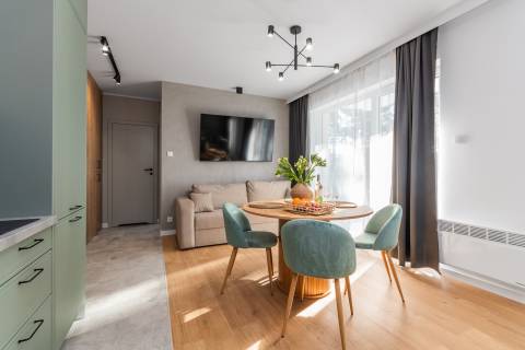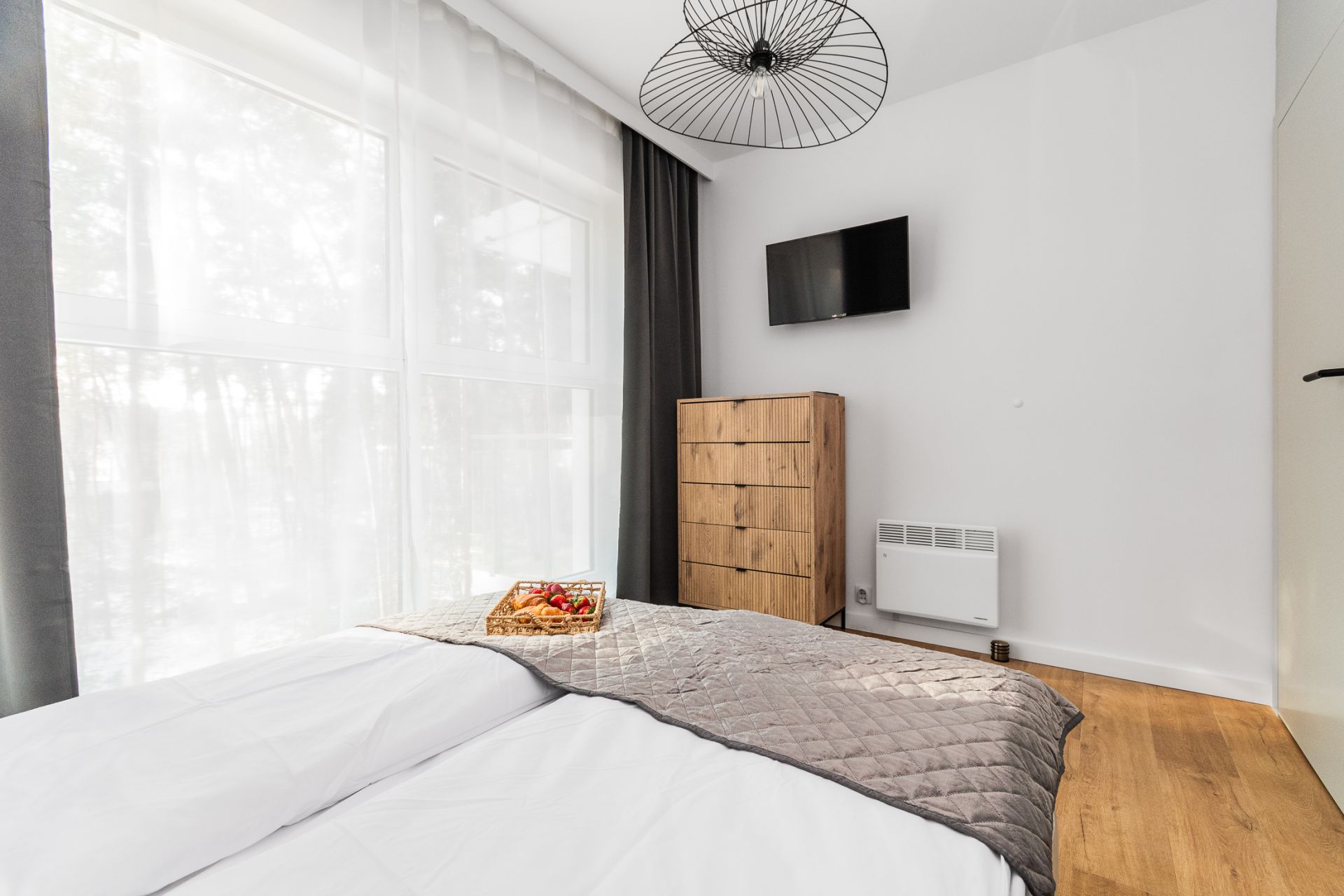 Przytulny apartament o powierzchni 36 m², położony w malowniczej okolicy, z niezwykłym widokiem na las, to idealne miejsce na relaks i wyciszenie blisko natury. Wnętrze zaprojektowano z dbałością o detale, łącząc komfort, funkcjonalność i estetykę.