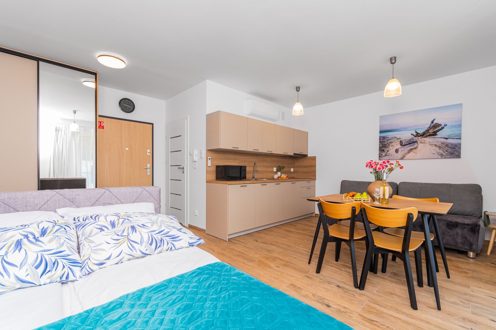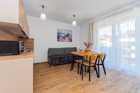 Funkcjonalnie zaprojektowany i przytulny apartament o powierzchni 28 m², położony na drugim piętrze od strony północnej, to doskonała propozycja na spokojny wypoczynek nad Bałtykiem. Przeznaczony dla maksymalnie 4 osób, sprawdzi się zarówno dla par, rodzin z dziećmi, jak i grupy przyjaciół.