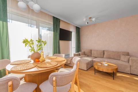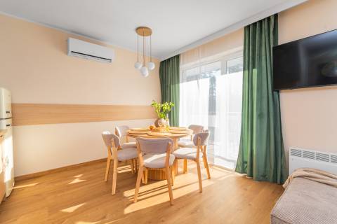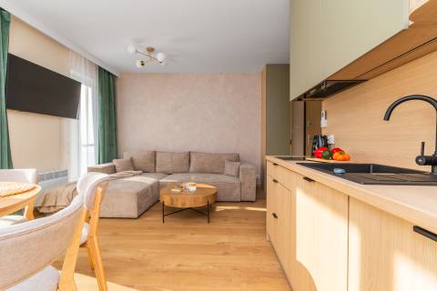 Jeśli marzysz o wypoczynku w miejscu, które łączy nowoczesny komfort, elegancję i bliskość natury, ten apartament spełni Twoje oczekiwania. Nowo oddany apartament o powierzchni 47,77 m² został zaprojektowany z dbałością o każdy detal. Przemyślany układ wnętrz zapewnia wygodę zarówno rodzinom, jak i grupom przyjaciół – komfortowo pomieści do 6 osób.
