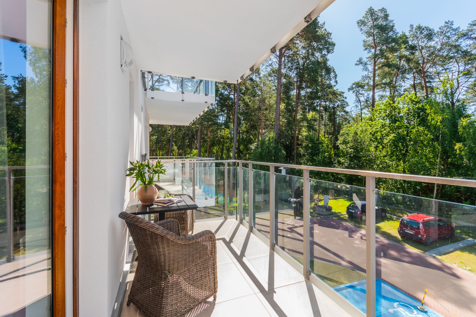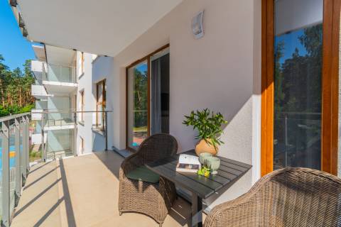 - Balkon z meblami ogrodowymi – idealny na poranną kawę lub wieczorny relaks