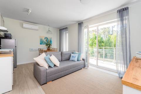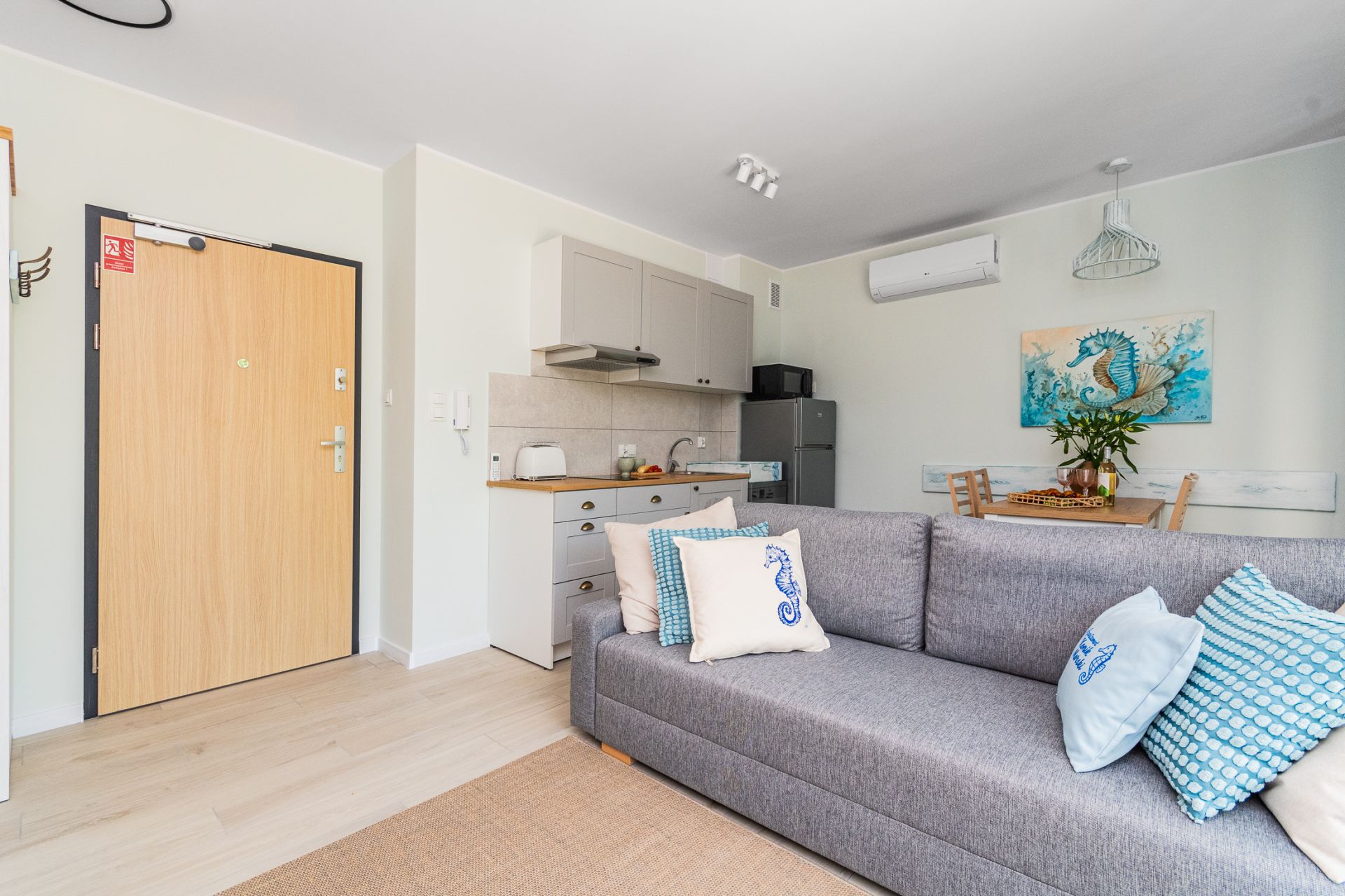 Zapraszamy do eleganckiego, w pełni wyposażonego apartamentu o powierzchni 35 m², położonego na I piętrze. To idealne miejsce na wypoczynek dla par, rodzin lub grupy przyjaciół – maksymalnie 4 osoby – ceniących sobie wygodę i bliskość morza oraz lokalnych atrakcji.