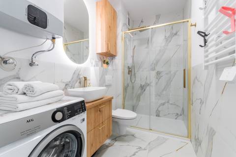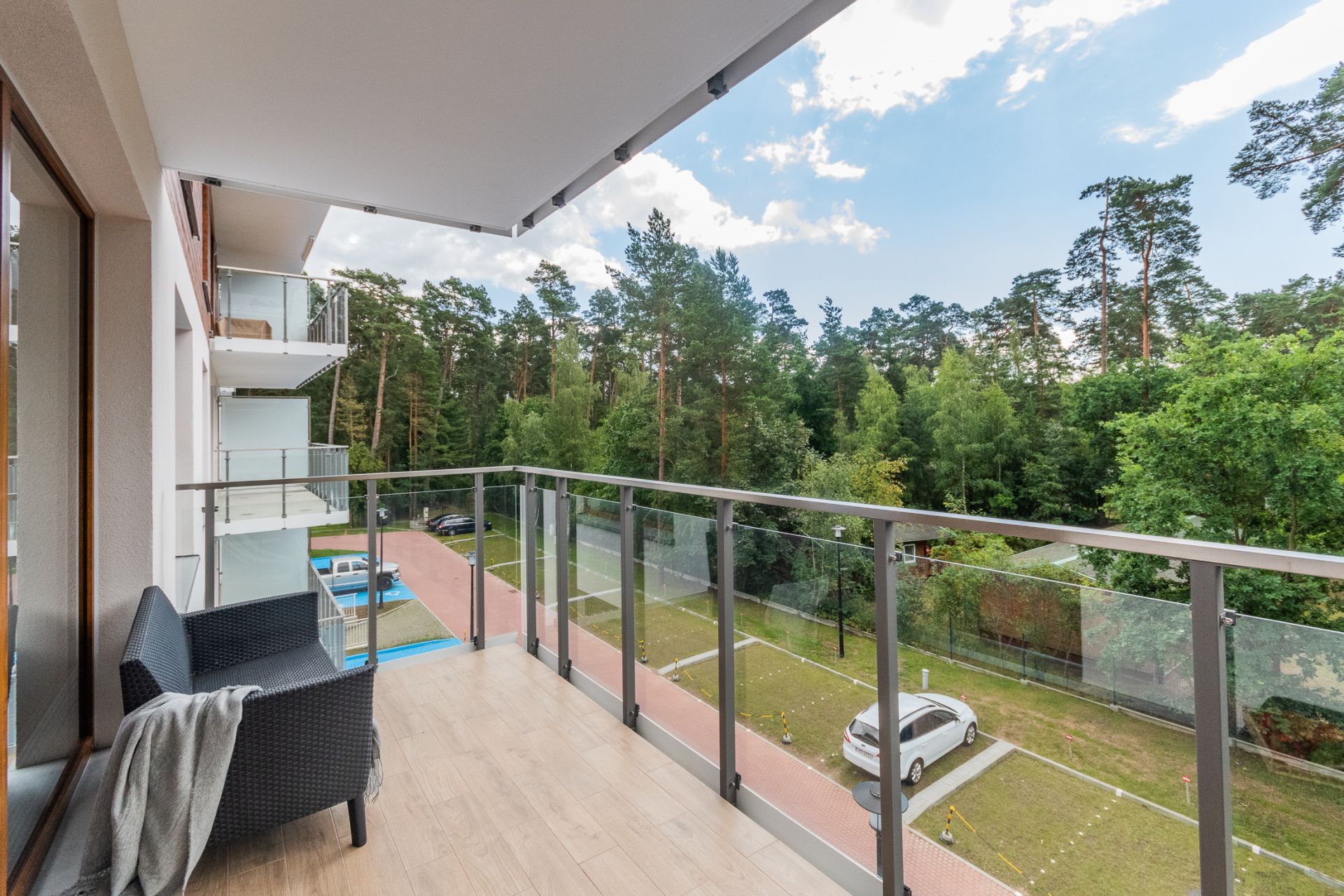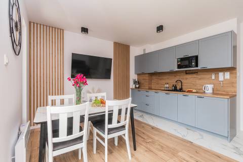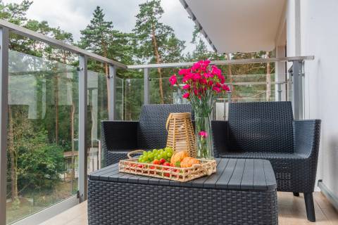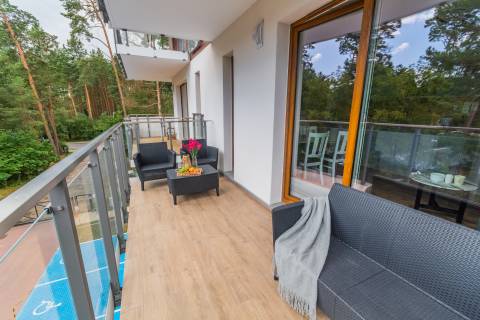 Na przestronnym balkonie znajduje się zestaw wypoczynkowy – idealne miejsce na poranną kawę czy wieczorny relaks. Osiedle jest zamknięte i bezpieczne, co sprzyja spokojnemu wypoczynkowi. To idealne miejsce na pobyt nad morzem – dla par, małych rodzin czy przyjaciół. Bliskość plaży, komfortowe wnętrze i spokojna okolica sprawiają, że ten apartament to świetny wybór na każdą porę roku.
